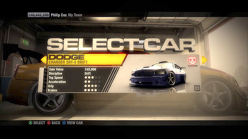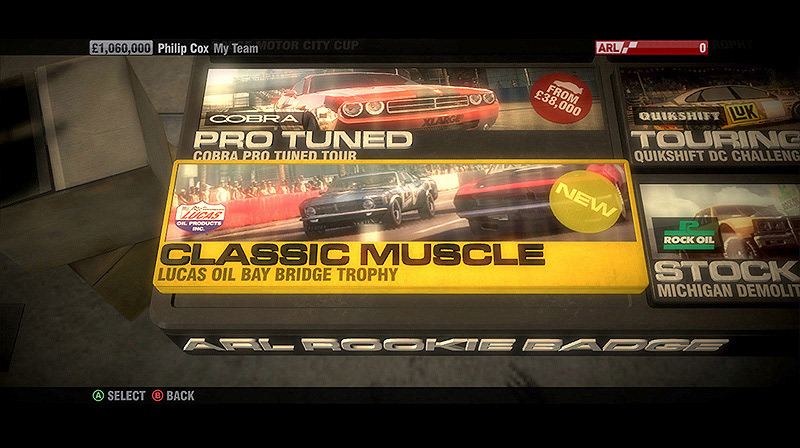 My second racing game UI at Codemasters was Race Driver: GRID. We pushed the 3D engine further to create a gritty, grease-monkey garage atmosphere.